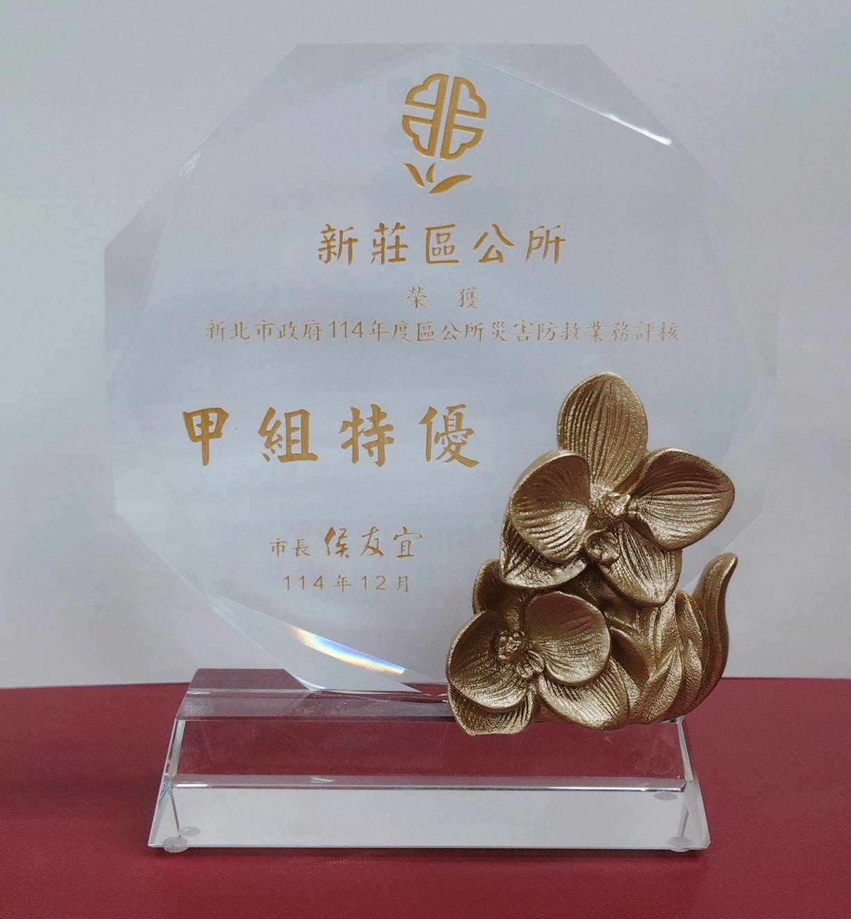 新莊區榮獲新北市政府114年度災害防救評核業務甲組特優