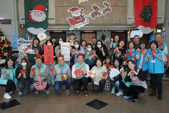 新莊區長朱思戎代表市長侯友宜發放「馬上賺錢」立體福袋
