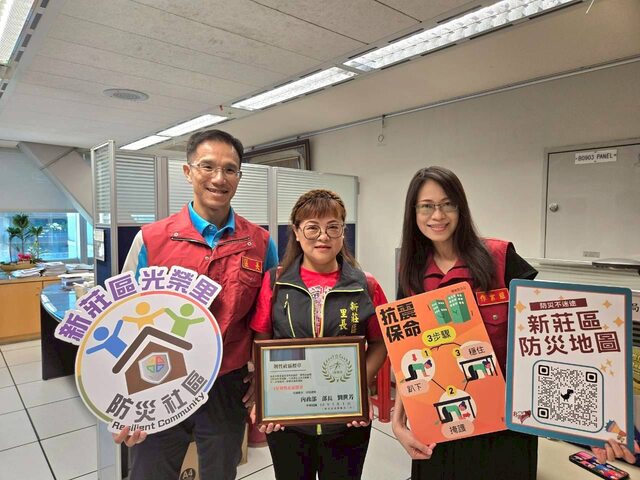 今日(8/28)於「新北市動員、戰綜、災防三會報」中,#市長侯友宜 親自頒授【光榮里一星韌性社區標章】及【績優防災士感謝狀】,肯定新莊區防災社區與防災士長期的努力與付出!