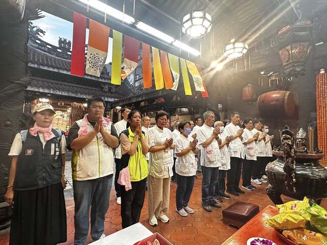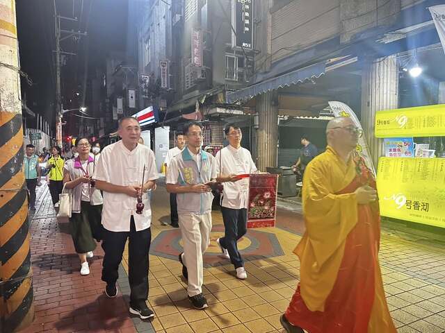 #慈祐宮(新莊媽)於今日農曆7月14日循古禮舉行一年一度的「中元普渡祭暨放水燈」活動。慈祐宮主委陳圓光、#新莊區長朱思戎 及境內10多名慶贊水燈首的里長一同參與。由法師誦經團拜啟程後,沿新莊老街步行祈福、於區內水燈排及藝閣車巡境,最終至新海橋下施放水燈,儀式圓滿完成,護佑地方安泰