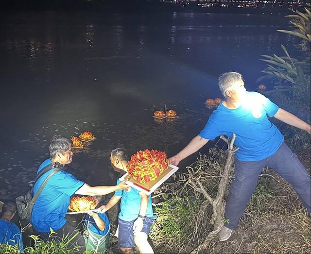 水燈祈願:岸上的水燈排引領幽魂找到歸路;河上的水燈則為孤魂指引明路。放水燈儀式不僅普渡眾生,同時也承載眾人祈求平安的心願。