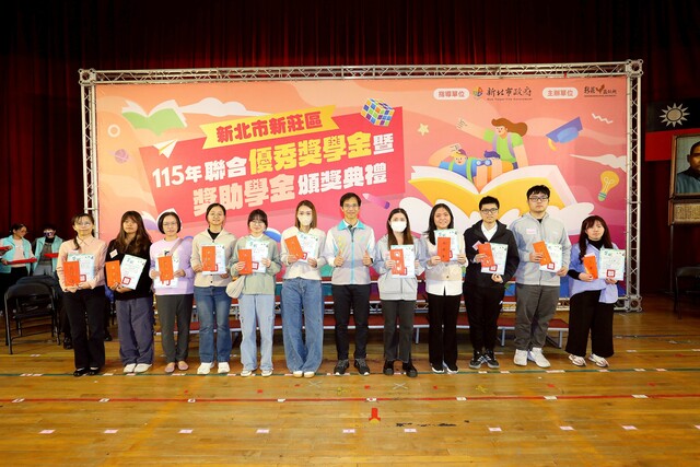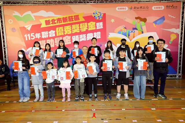 今天為其中26個捐贈單位之聯合頒獎典禮,現場有588位獲獎學生來到現場,典禮頒獎金額計246萬9,000元,再加上自行頒獎的4個單位(地藏庵、慈祐宮、文昌祠、武聖廟),115年聯合獎助學金總計629萬7,000元,1,108位獲獎學子,每筆獎學金都充滿捐贈單位的真摯期盼,相信新莊囝仔會力爭上游,將來學有所成、回饋社會,將這份情傳下去。