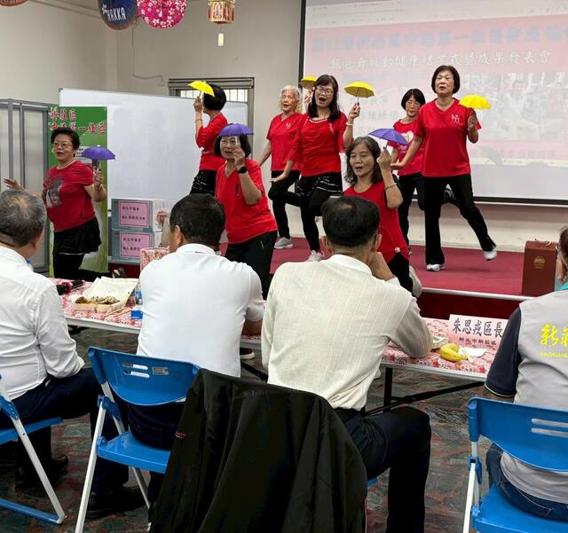 中港第一社區發展協會今(11/5)日舉辦「銀髮族共餐暨社區動健康銀色奇肌班成果發表」,邀請議長蔣根煌、新莊區長朱思戎及主任秘書劉天從等長官貴賓蒞臨,共同見證樂齡長輩們的活力與自信。